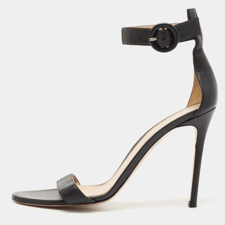 Pre Owned Gianvito Rossi Black Leather Portofino Ankle Strap Sandals Size 40