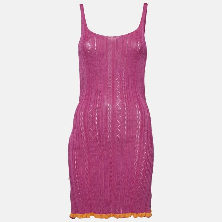 Pre Owned Gimaguas Pink Patterned Knit Sleeveless Mini Dress S