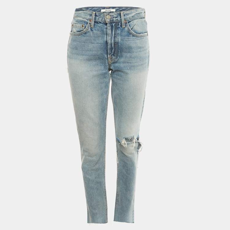Pre Owned Grlfrnd Navy Blue Ripped Denim Karolina Jeans S Waist 28"