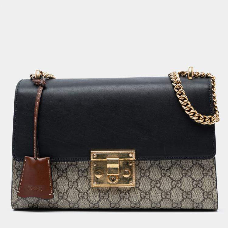 Gucci Beige Brown Medium GG Supreme Padlock Shoulder Bag