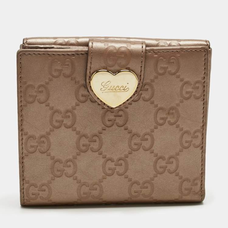 Gucci Beige Guccissima Leather Lovely Heart French Wallet