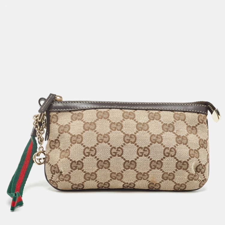 Gucci Beige/Brown GG Canvas Web Wristlet Pouch