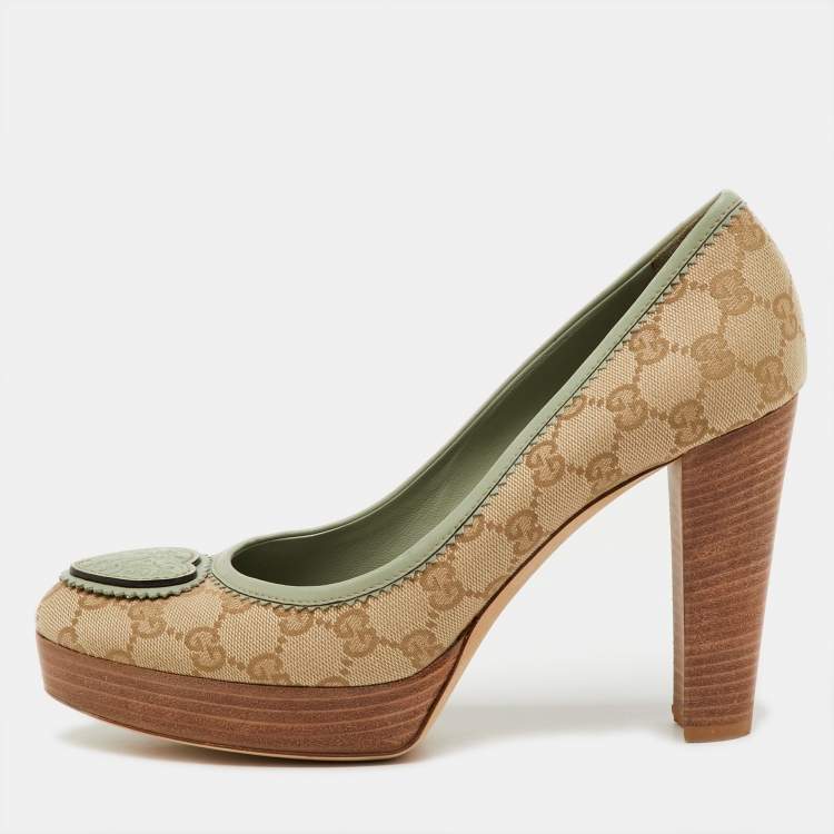 Gucci Beige/Light Green GG Canvas and Leather Babouska Platform Pumps Size 40.5