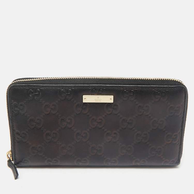 Pre Owned Gucci Black Guccissima Leather Zip Around Wallet