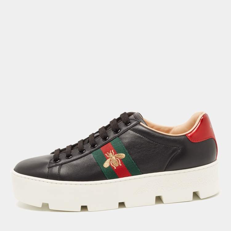 Pre Owned Gucci Black Leather Ace Lace Up Sneakers Size 38.5