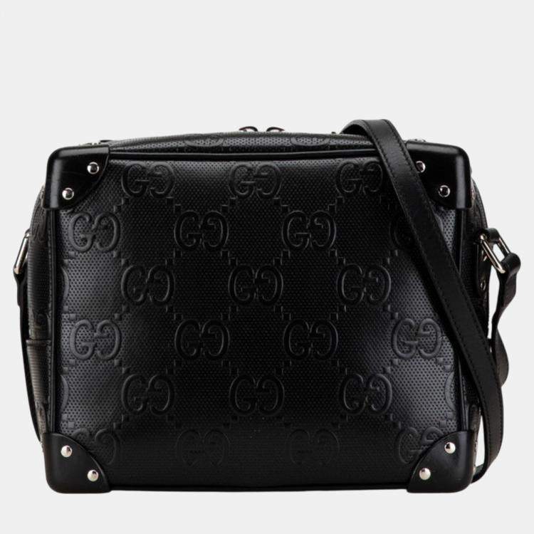 Gucci Black Leather Gg Embossed Shoulder Bag