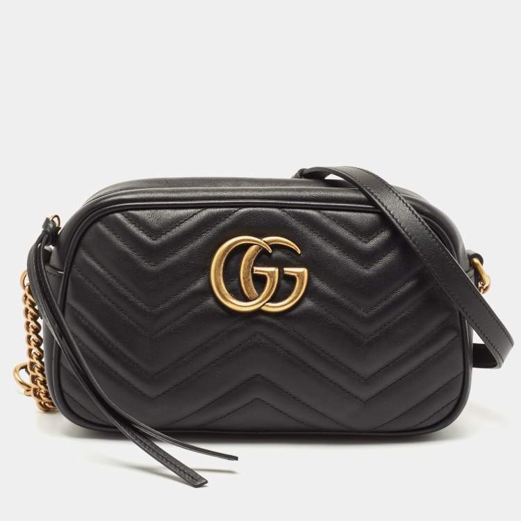 Gucci Black Matelasse Leather Small GG Marmont Shoulder Bag