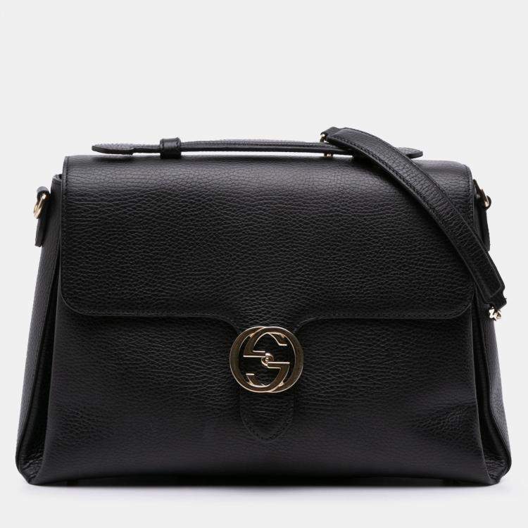 Pre Owned Gucci Black Medium Dollar Calf Interlocking G Satchel