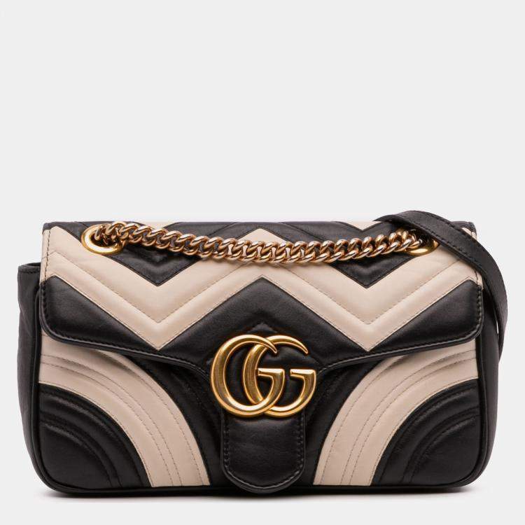 Gucci Black Medium GG Marmont Bicolor Matelasse Leather Shoulder Bag
