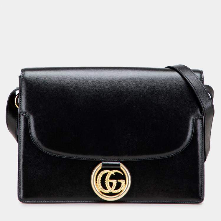 Pre Owned Gucci Black Medium Textured Calfskin GG Torchon Ring Crossbody Bag