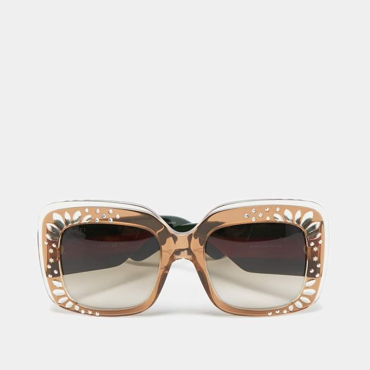 Pre Owned Gucci Brown Gradient GG3862/S Crystals Web Oversized Sunglasses