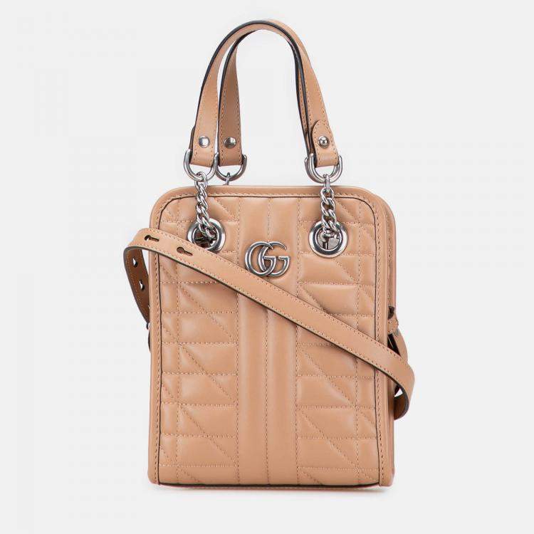 Pre Owned Gucci Brown Mini GG Marmont Matelasse Leather Aria Satchel