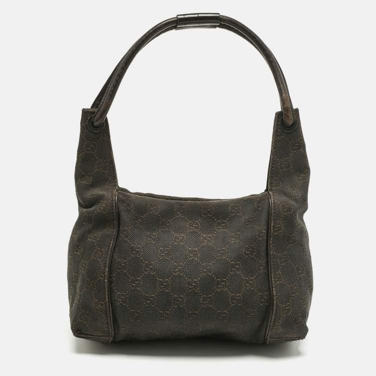 Gucci Dark Brown GG Canvas and Leather Zip Shoulder Bag