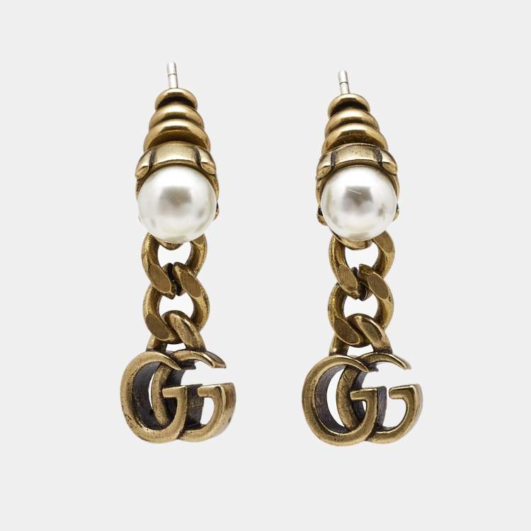 Gucci Double G Faux Pearl Gold Tone Earrings