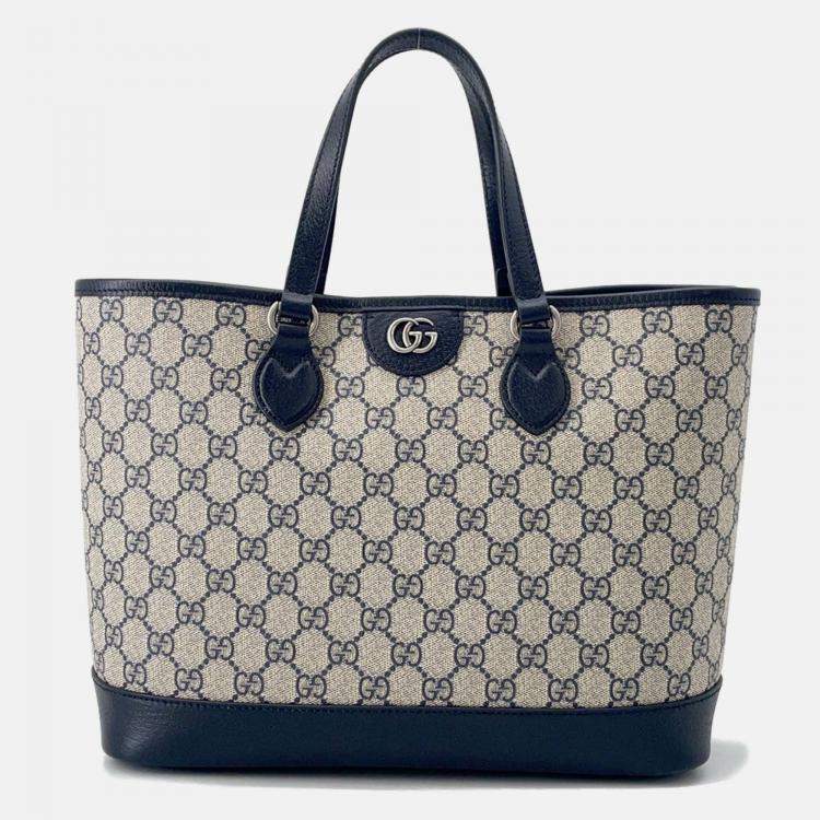 Pre Owned Gucci Ophidia Gg Supreme 2Way Tote Bag Beige/Navy Pvc Leather Size Small