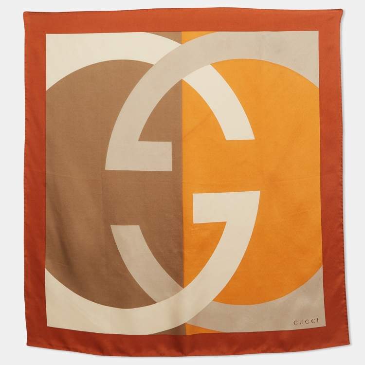 Gucci Orange Colorblock Interlocking G Print Silk Scarf