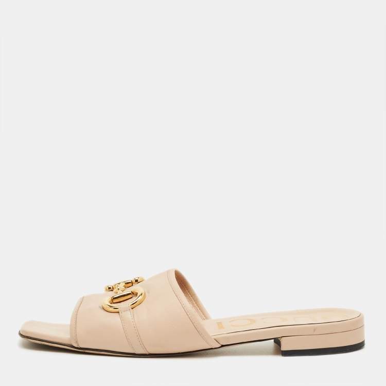 Gucci Pink Leather Horsebit Slide Flats Size 40