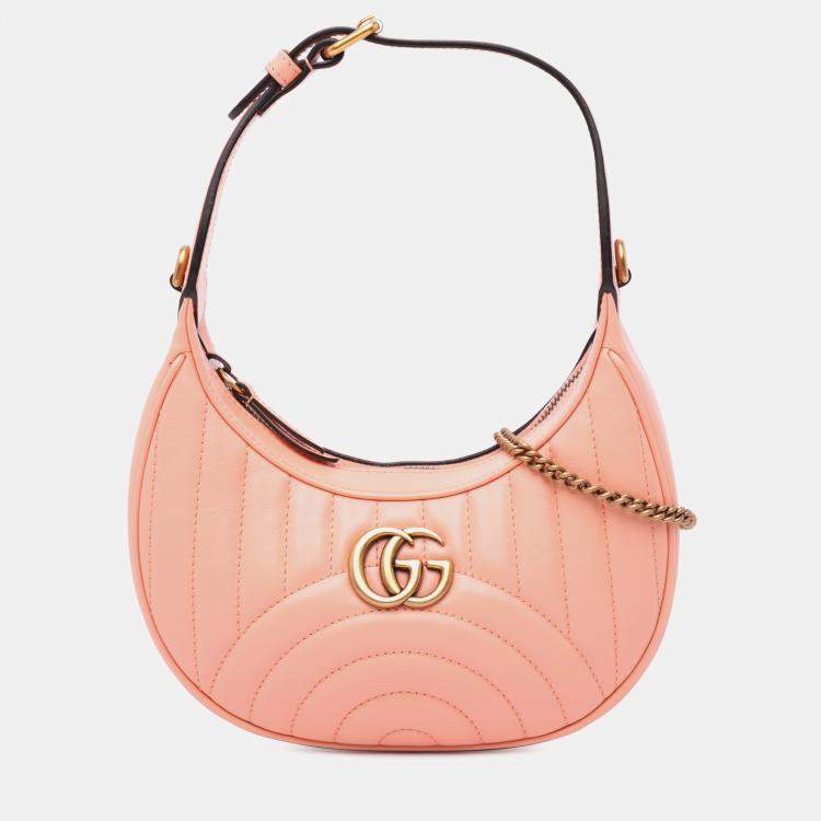 Gucci Pink Mini Matelasse Leather GG Marmont Half Moon Hobo
