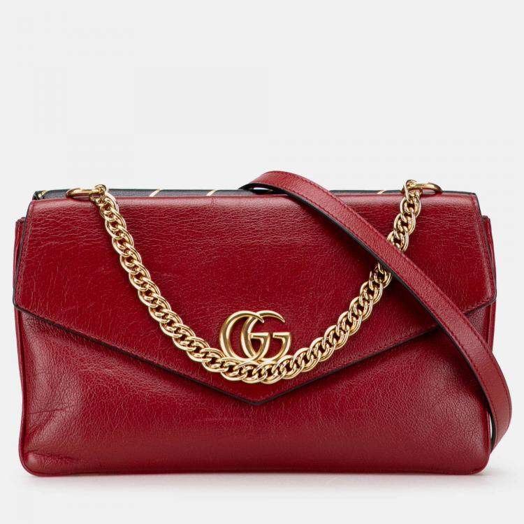 Pre Owned Gucci Red Medium Leather Double Thiara Satchel