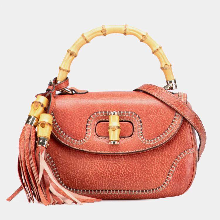 Pre Owned Gucci Red Small Leather New Bamboo Satchel