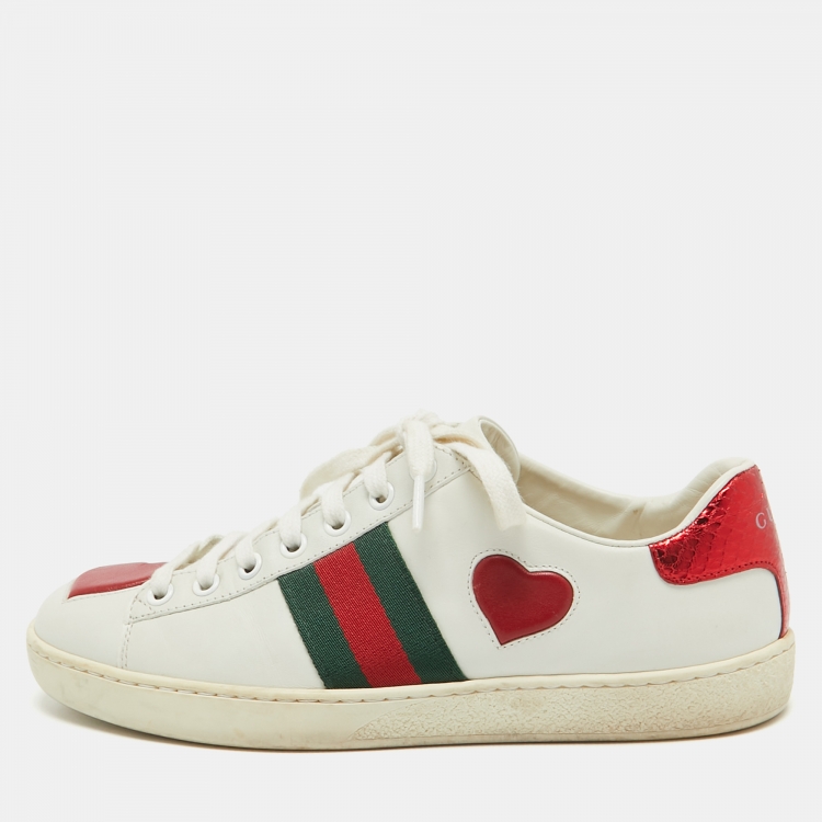 Pre Owned Gucci White Leather Heart Ace Sneakers Size 36