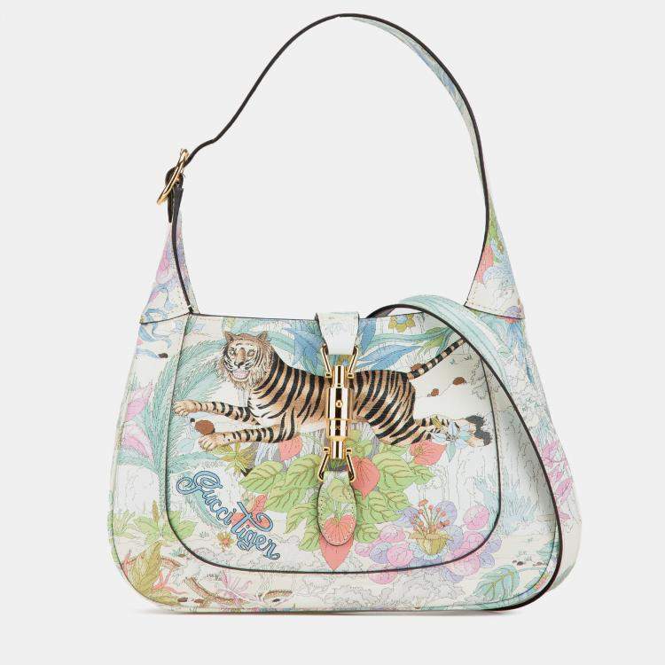 Gucci White Yuko Higuchi Small Calfskin Floral Print Jackie 1961