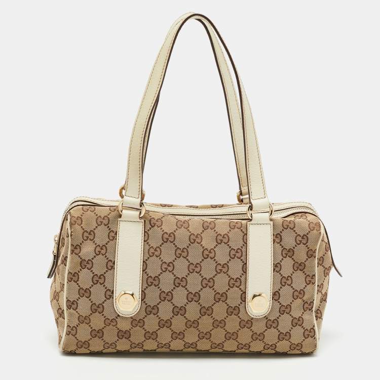Gucci White/Beige GG Canvas Small Charmy Boston Bag