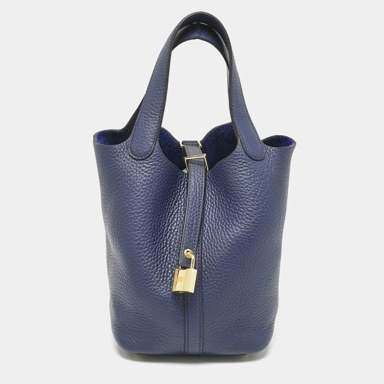 Pre Owned Hermès Bleu de Prusse Taurillon Clemence Leather Picotin Lock 18 Bag
