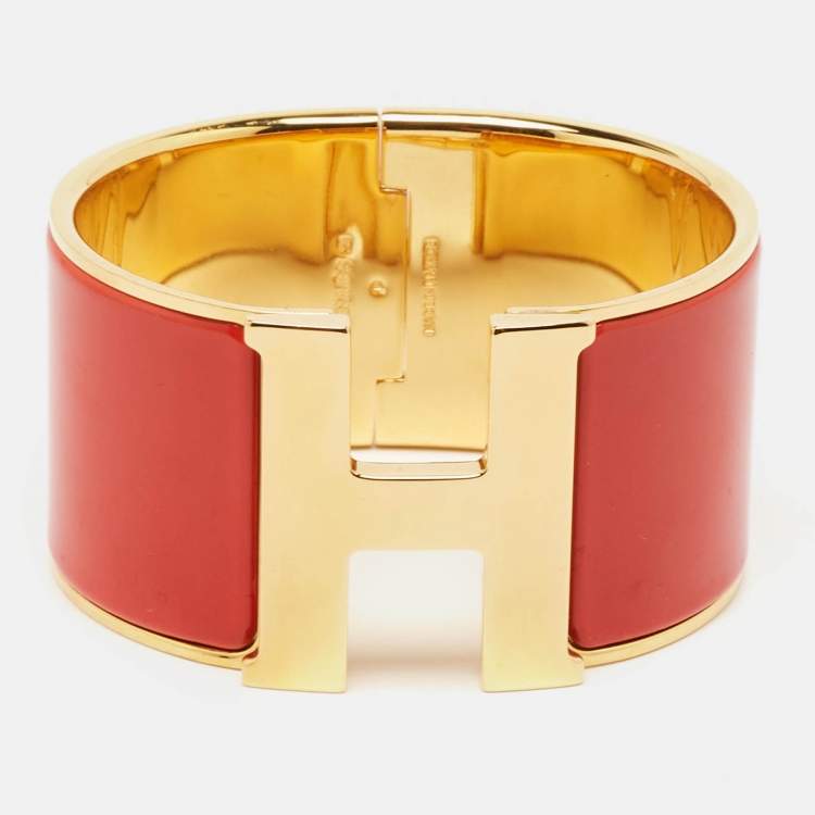 Pre Owned Hermès Clic Clac H Enamel Gold Plated Extra Wide Bracelet