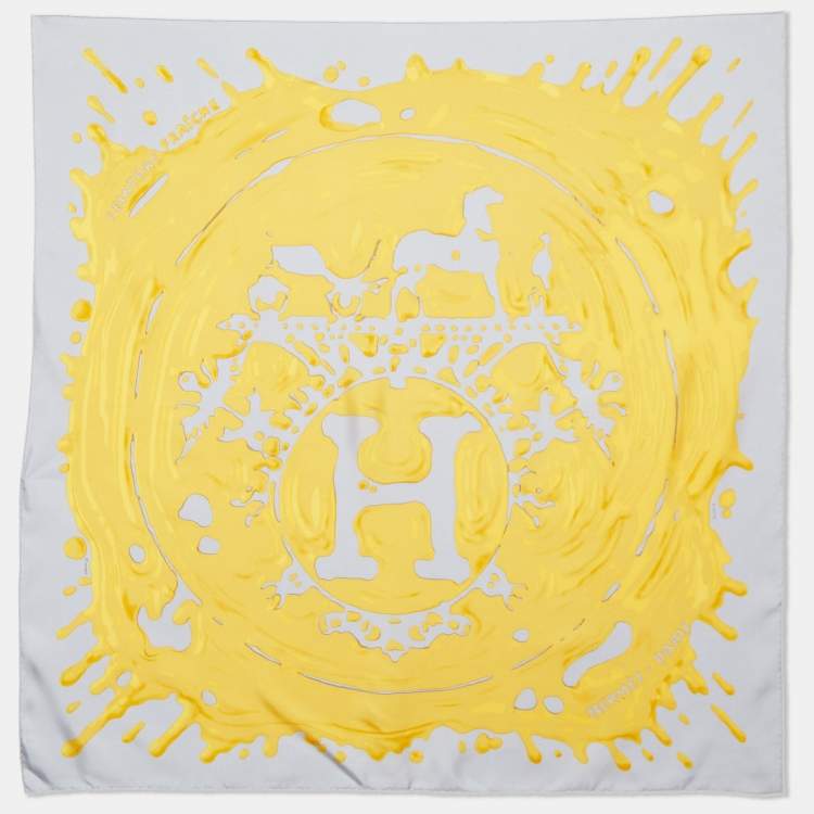 Hermès Grey & Yellow Peinture Fraiche Printed Silk Square Scarf
