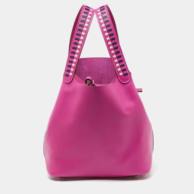 Hermès Magnolia/Bleu Saphir/Crate Leather Tressage Lock 22 Bag
