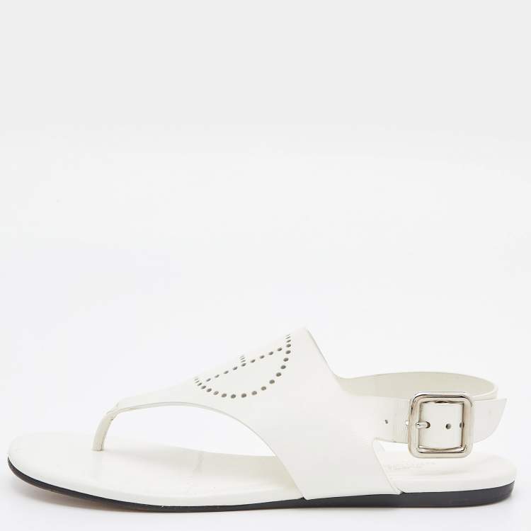 Hermès White Leather Kola Thong Flat Slingback Sandals Size 37