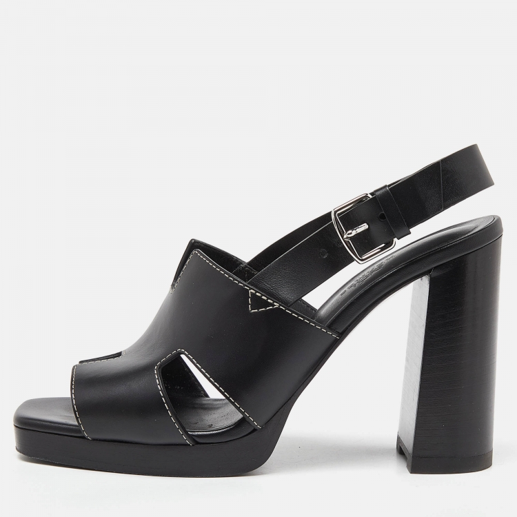 Hermes Black Leather Eris Block Heel Slingback Sandals Size 38