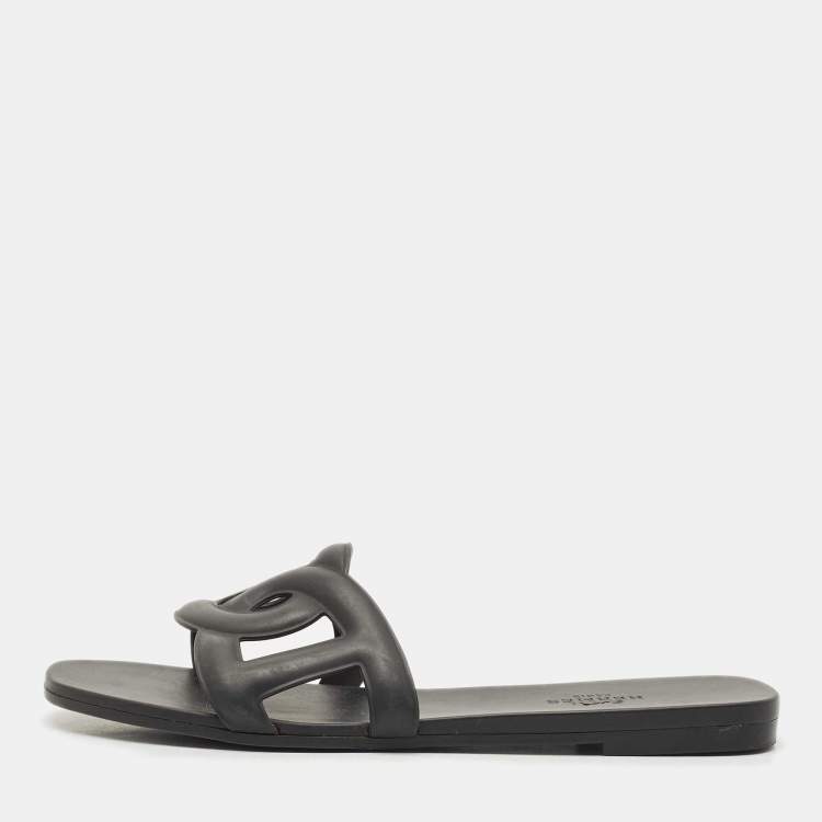Hermes Black Rubber Aloha Flat Slides Size 35