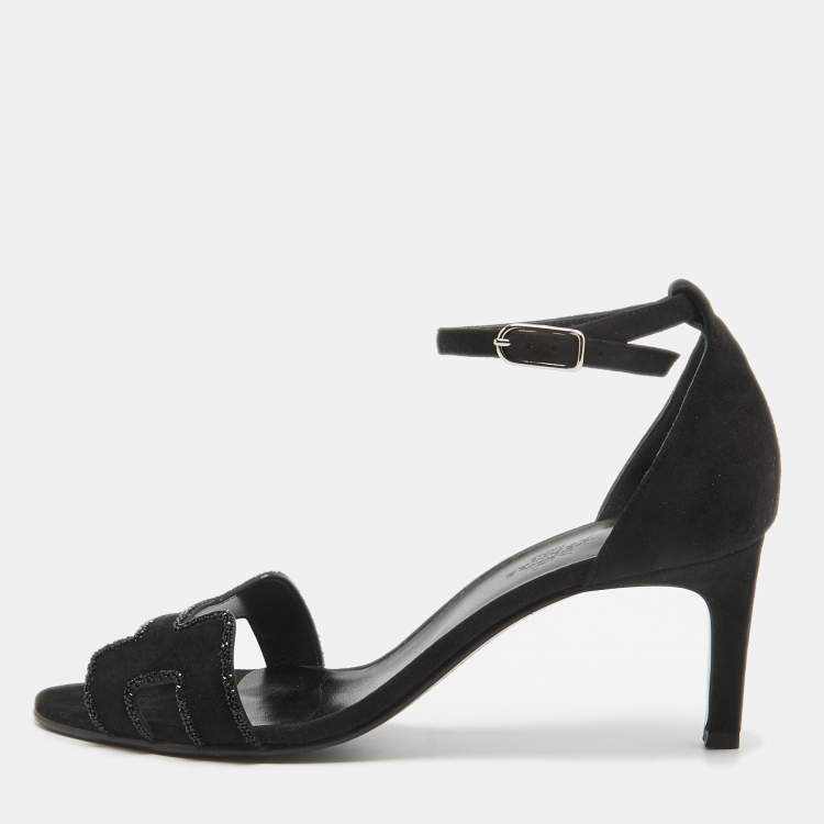 Hermes Black Suede Crystal Embellished Premiere Sandals Size 39
