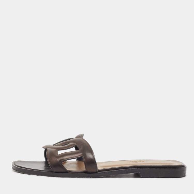 Hermes Brown Leather Aloha Flat Slides Size 36