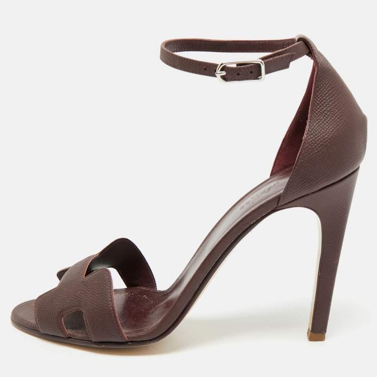 Pre Owned Hermes Burgundy Leather Joy Ankle Strap Sandals Size 41