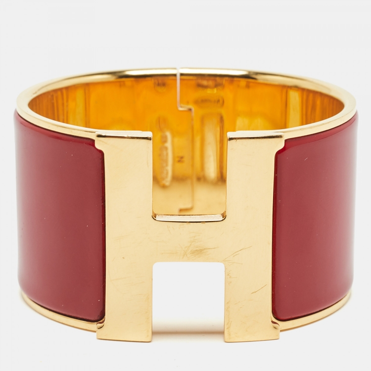 Hermes Clic Clac H Red Enamel Gold Plated Extra Wide Bracelet