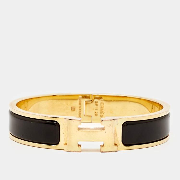 Pre Owned Hermes Clic H Enamel Gold Plated Bracelet
