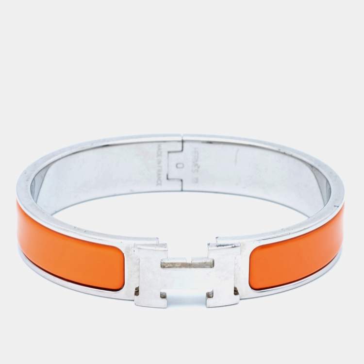Pre Owned Hermes Clic H Enamel Palladium Plated Bracelet