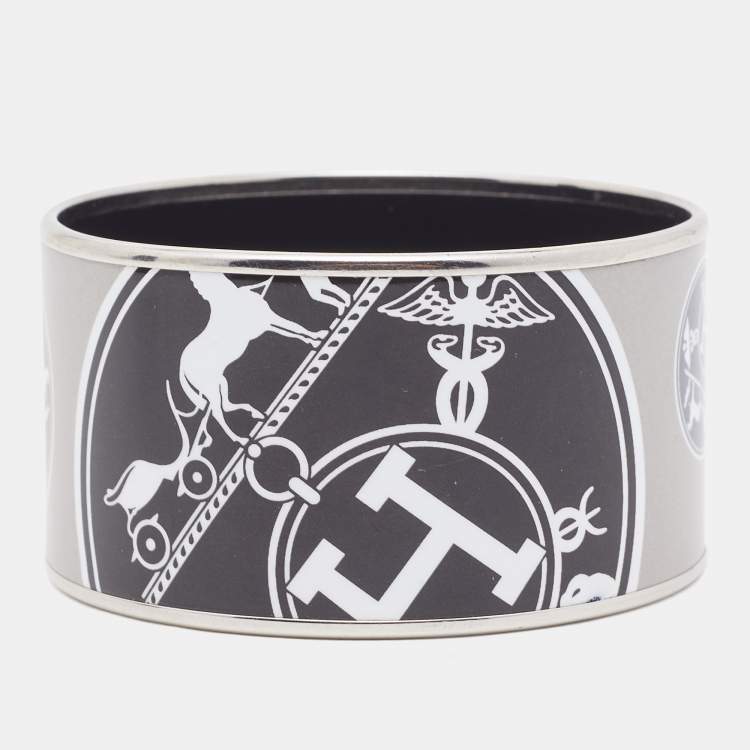 Hermes Confettis d'Ex Libris Enamel Palladium Plated Extra Wide Bangle Bracelet