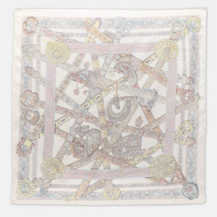 Pre Owned Hermes Cream Le Songe De La Licorne Printed Silk Scarf
