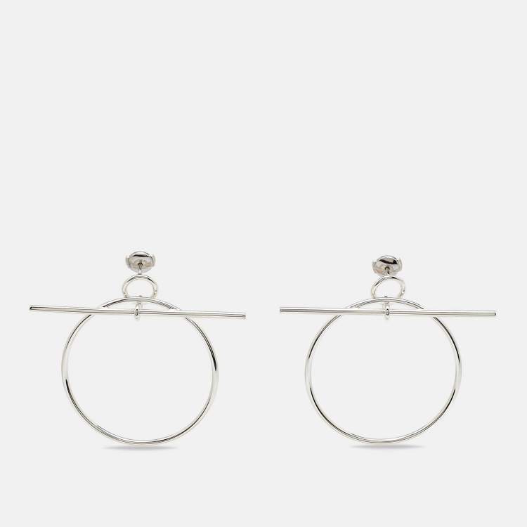 Pre Owned Hermes Loop Sterling Silver Medium Model Earrings