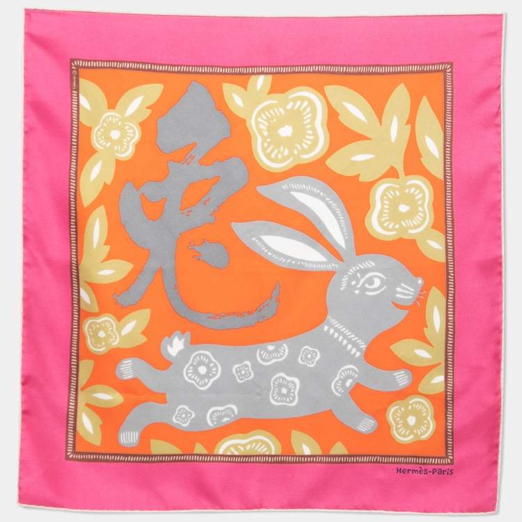 Pre Owned Hermes Multicolor Printed Silk Square Handkerchief