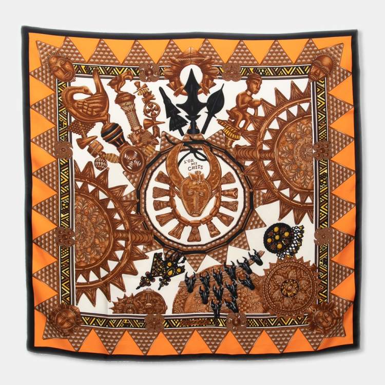 Pre Owned Hermes Orange  L'or Des Chefs Silk Scarf