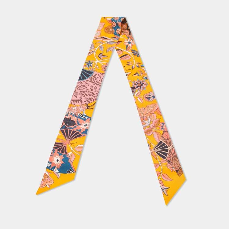 Pre Owned Hermes Orange Silk Fleurs et Papillons de Tissus Twilly