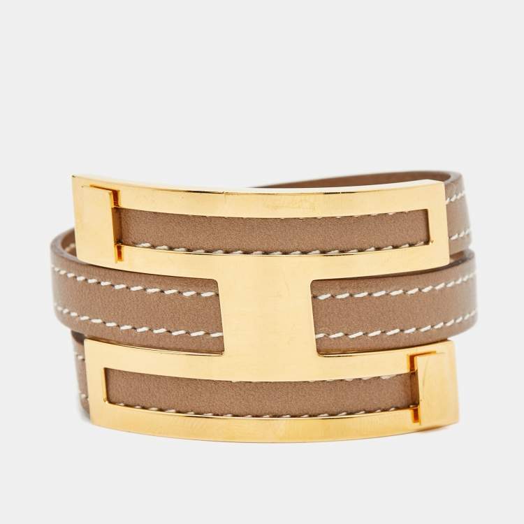 Hermes Pousse Pousse Brown Leather Gold Plated Bracelet