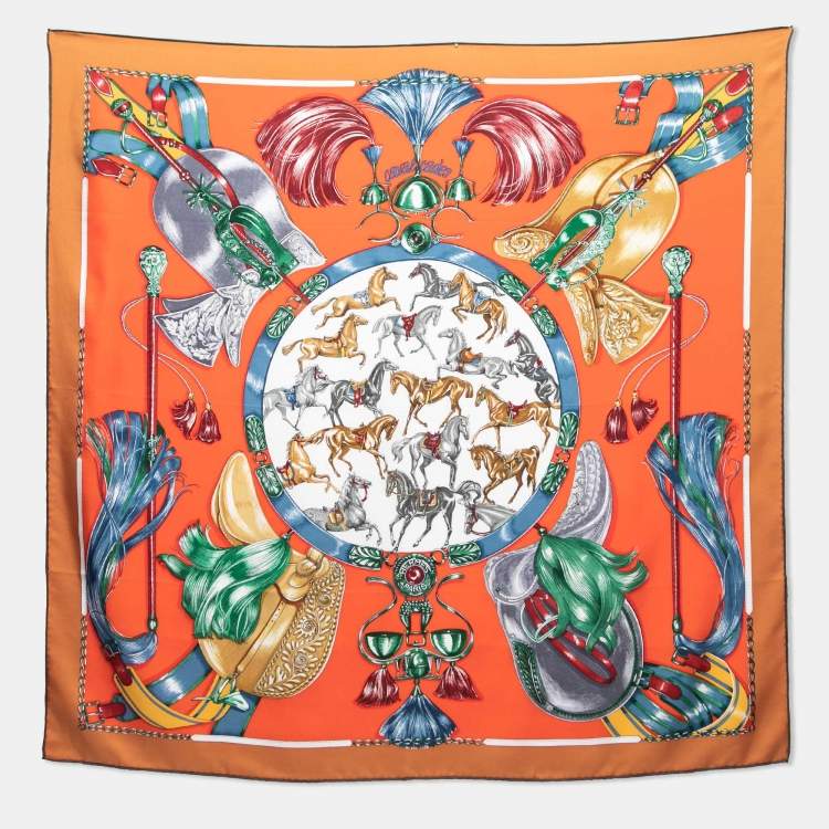 Pre Owned Hermes Caramel/Rouge Cavalcades Silk Scarf