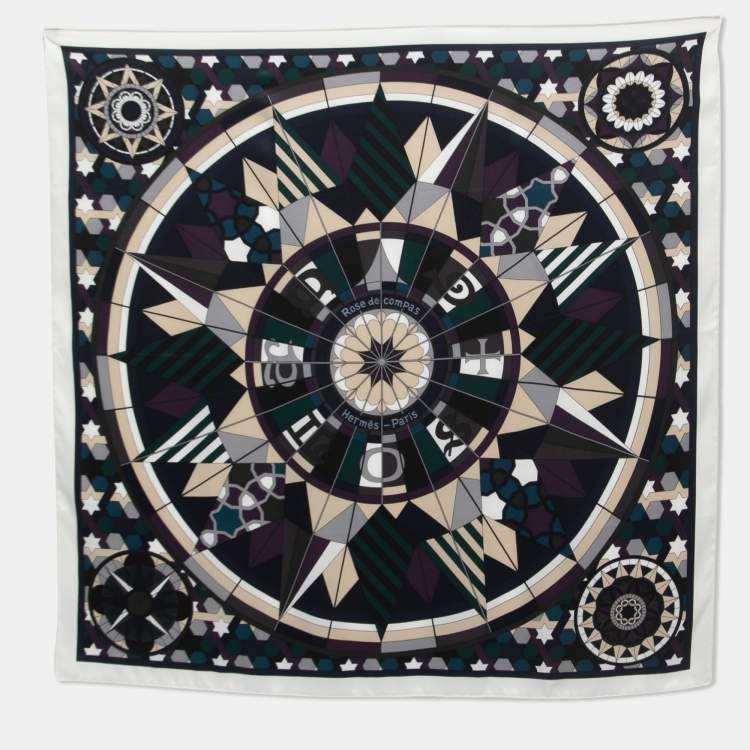 Hermes Multicolor Rose de Compas Silk Scarf