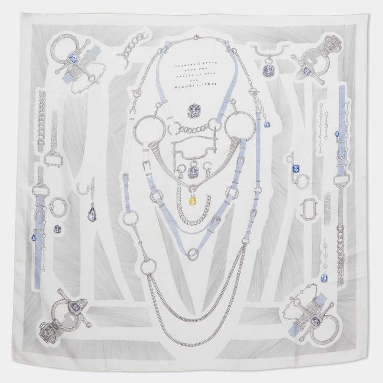 Pre Owned Hermes White Planche d'Etude Pour une Parure de Gala Silk Scarf
